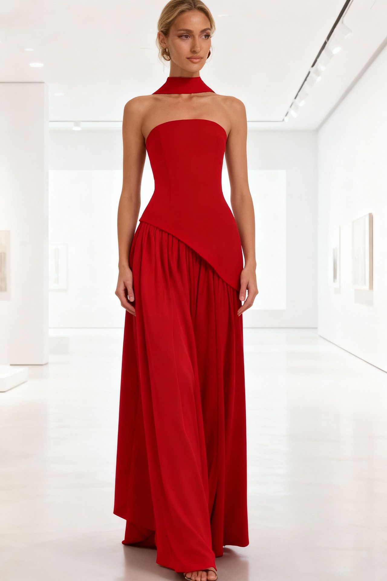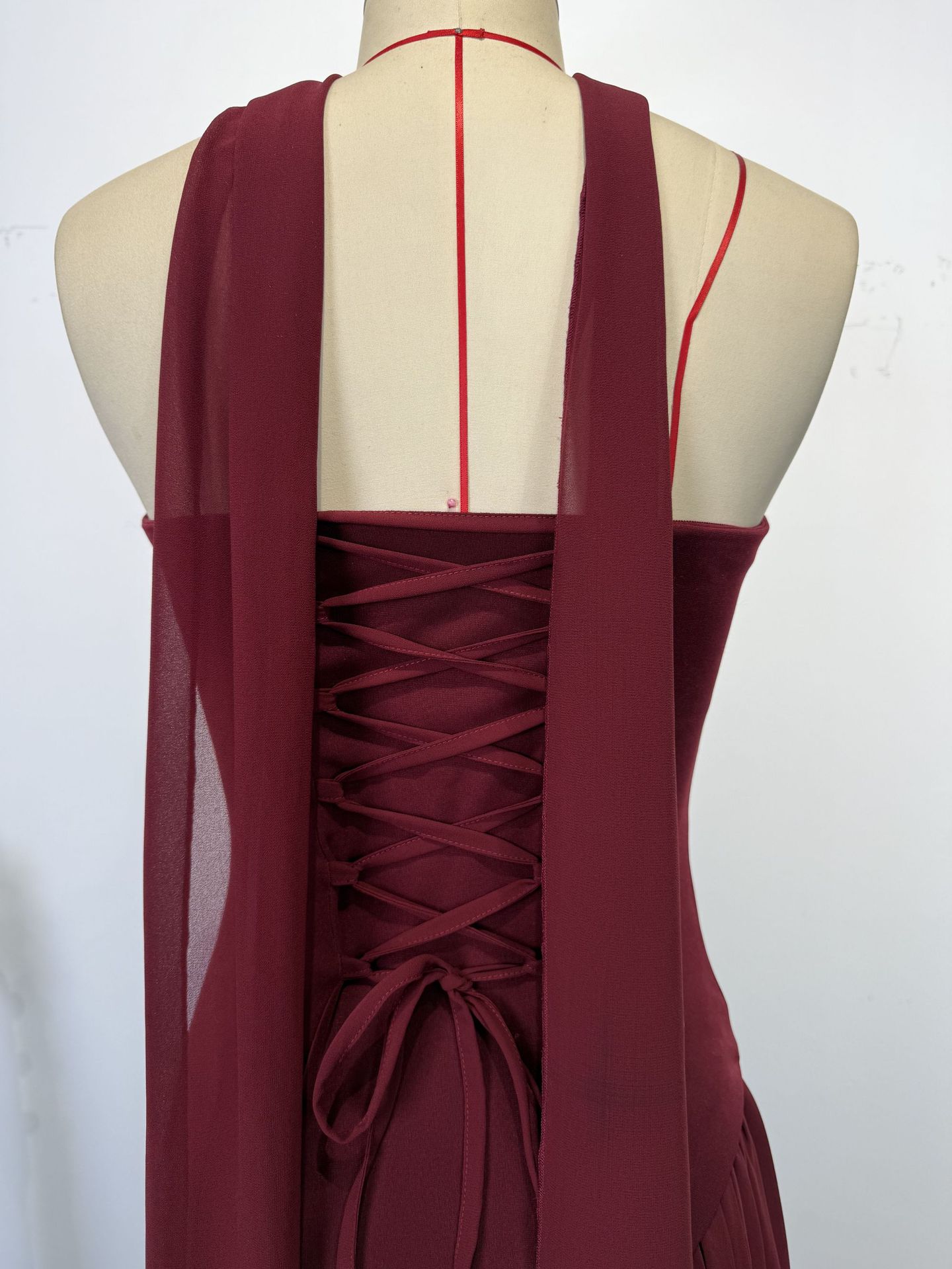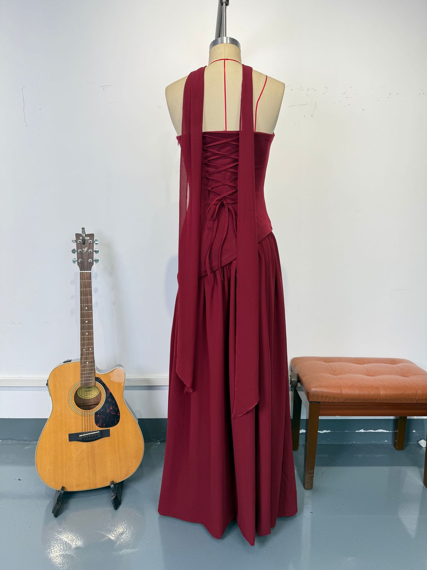 Tube Top Solid Color Split Dress Sexy Backless Halter Ribbon Dress