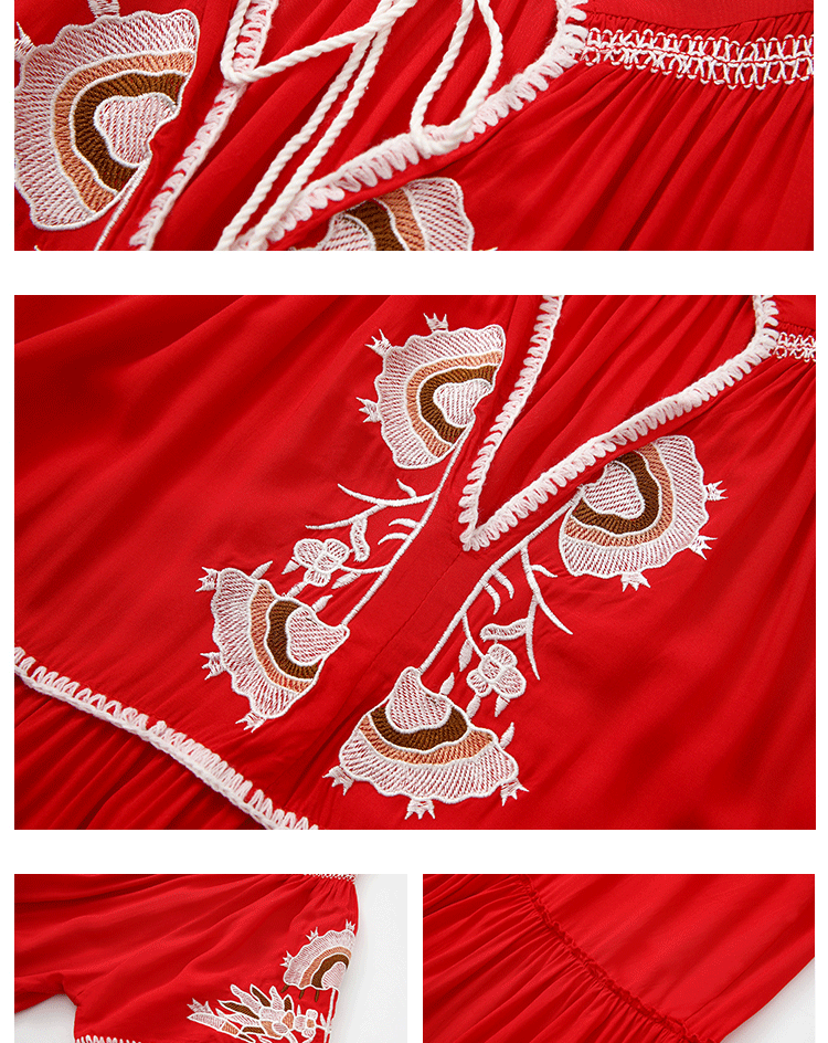 Vestito da donna primaverile ed estivo in stile bohémien con pizzo ricamato e trazione