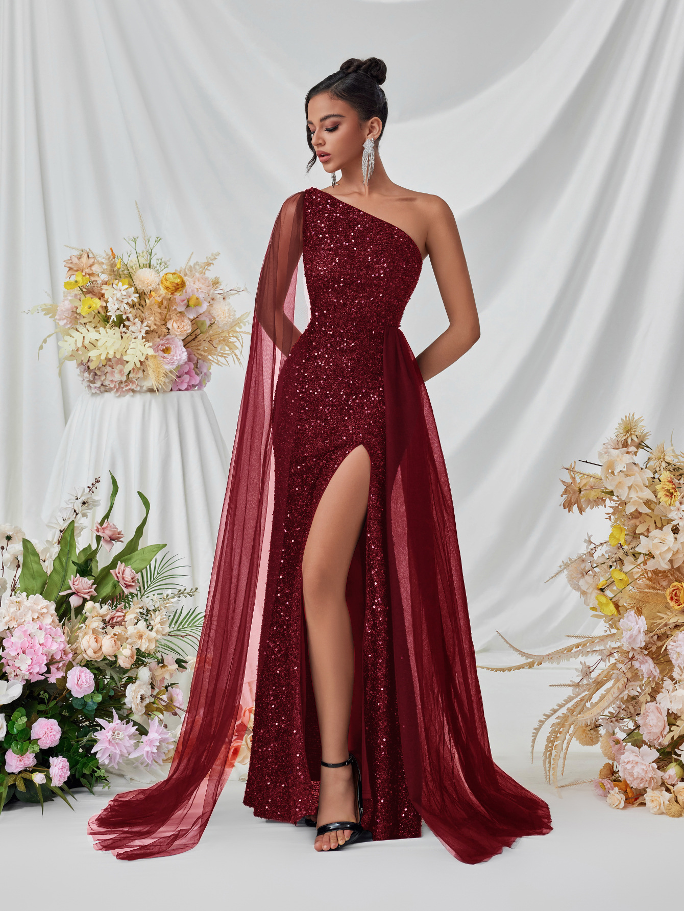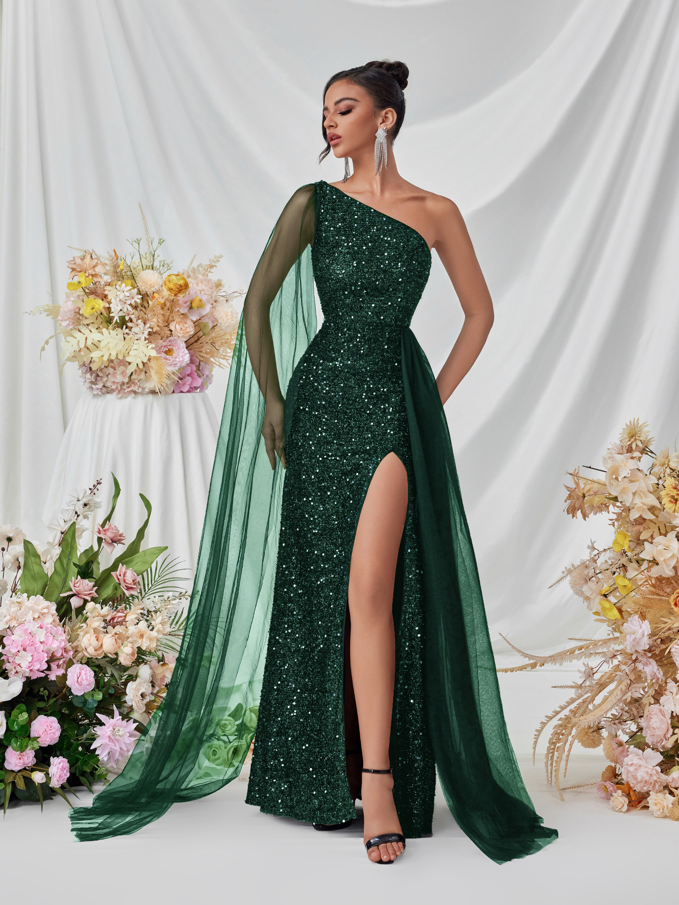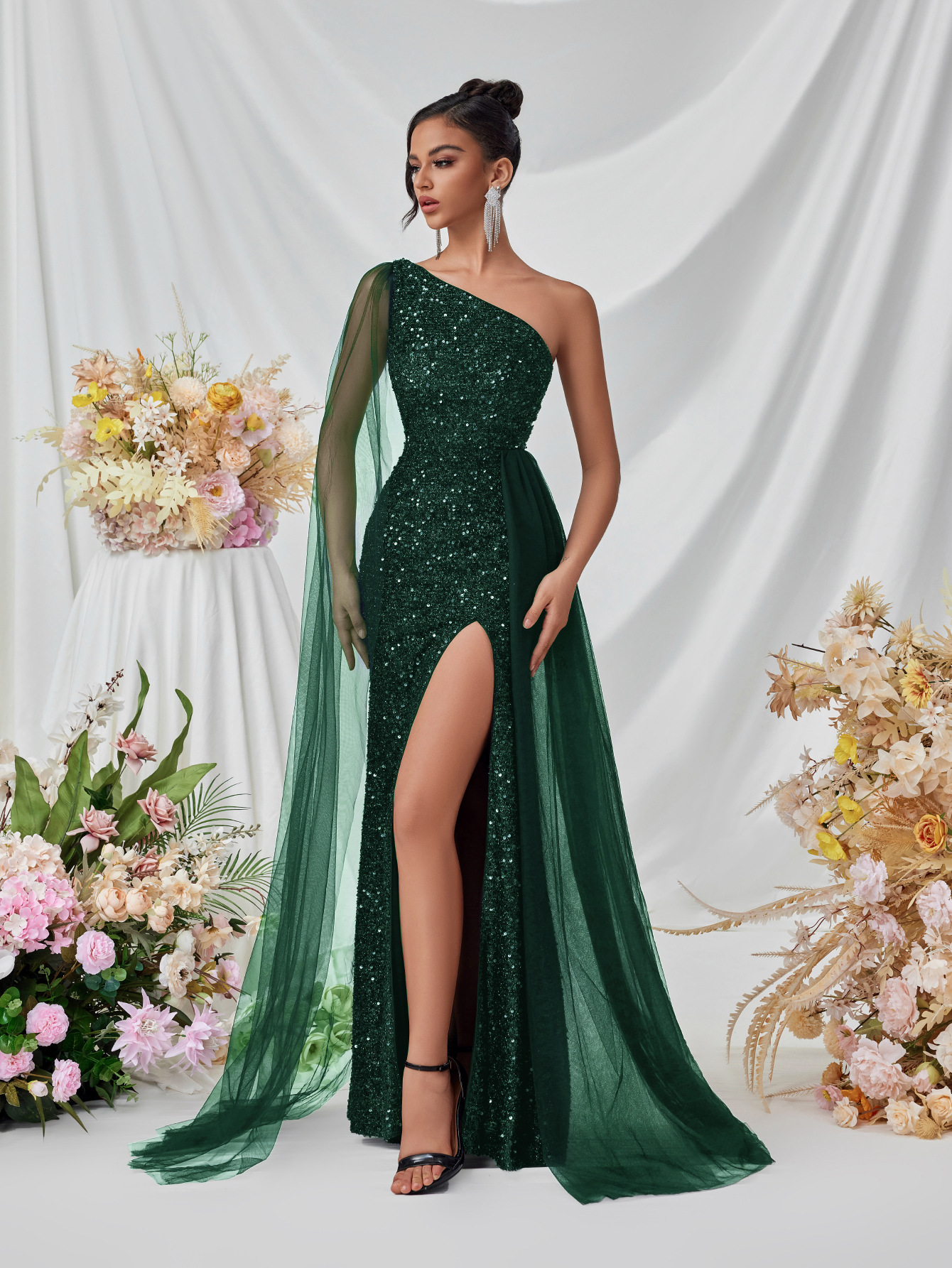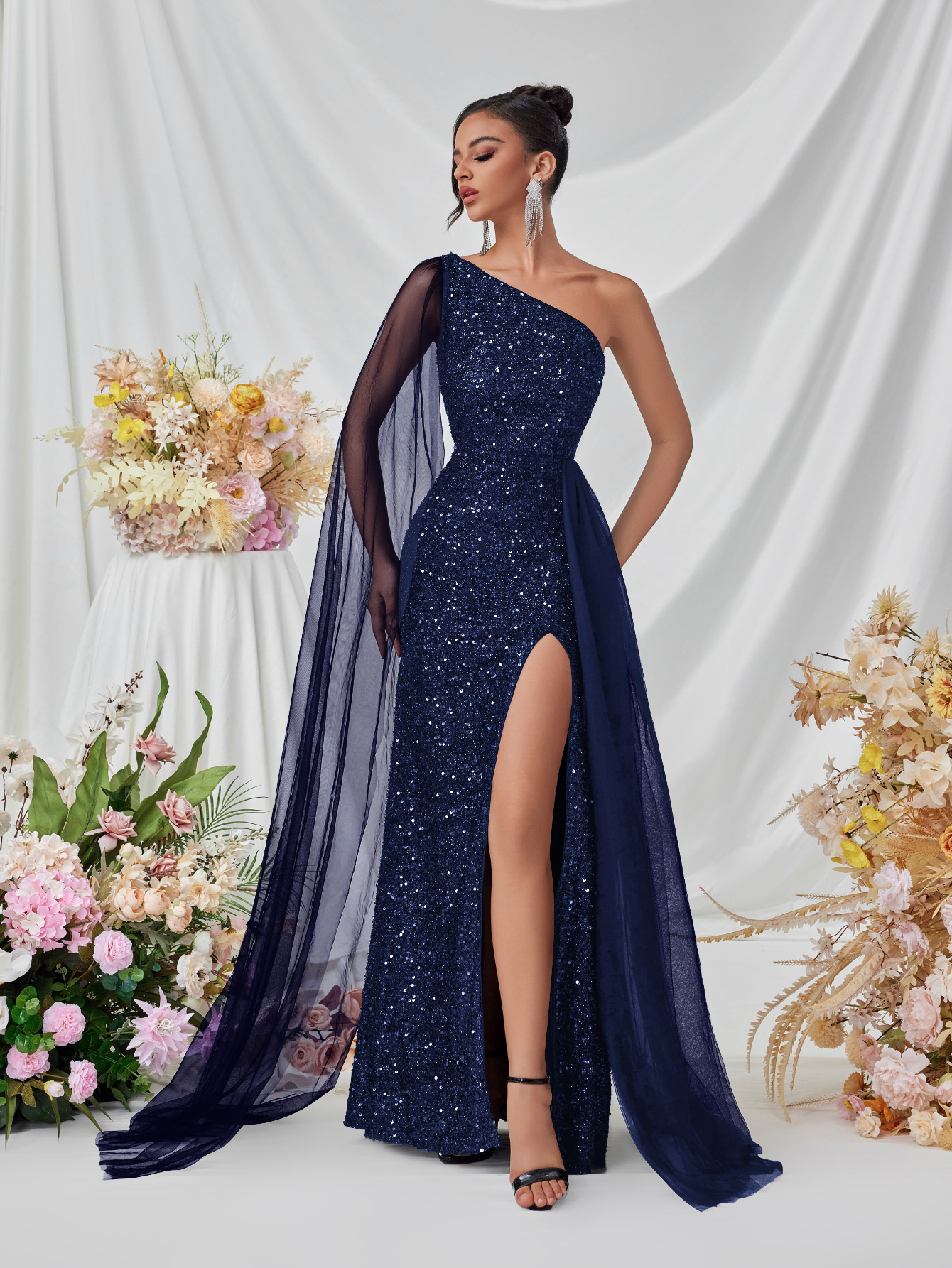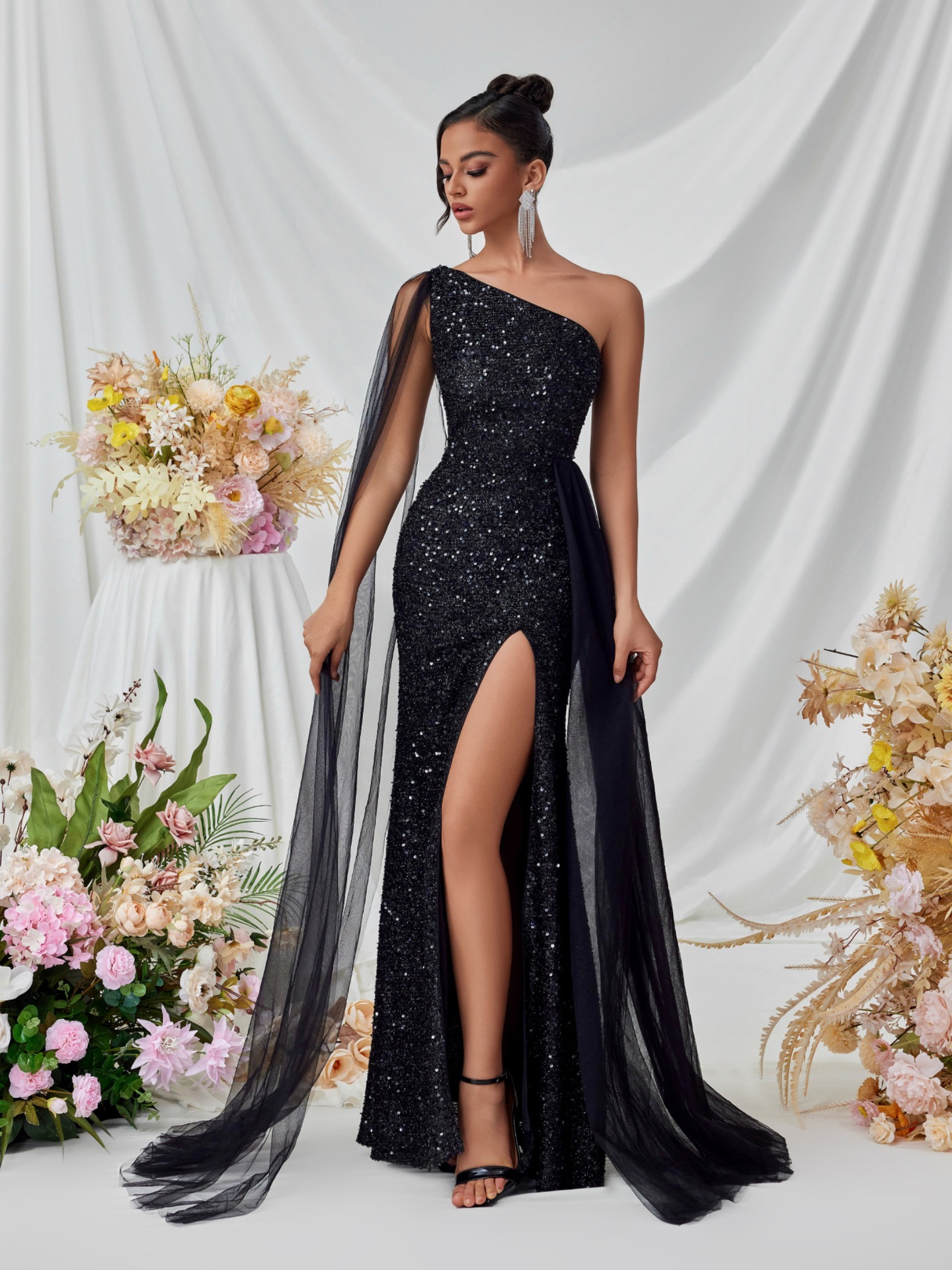 Shine at every occasion with the Mariangela Shoulder Sequined Evening Dress. Featuring dazzling sequins and a stylish shoulder design, this elegant gown offers a glamorous, figure-flattering silhouette. Perfect for cocktail parties, evening events, weddings, or formal gatherings, it combines sophistication with a bold sparkle. Pair with heels and minimal accessories for a standout, polished look.